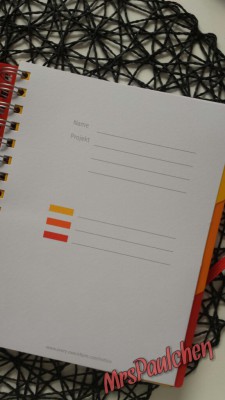 Der, die, das Notizio hat einen Kunststoffeinband mit Verschlussband und ein Farbiges Register mit Dokumententasche. Das Papier ist hellgrau mit weißer Lineatur, welches angenehmer für die Augen sein soll und auf Kopien nahezu unsichtbar sein soll. Das glatte 90g/qm Papier fühlt sich gut an und lässt sich angenehm beschreiben.