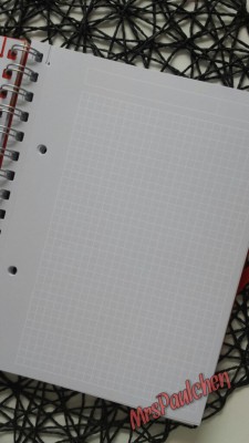 Die weißen Linien auf hellgrauem Papier sind wirklich angenehm für die Augen, und die Schrift kommt viel mehr zur Geltung. Die Blätter sind perforiert, so dass sie sich leicht herausnehmen lassen, und sie sind bereits gelocht um sie direkt abheften zu können.